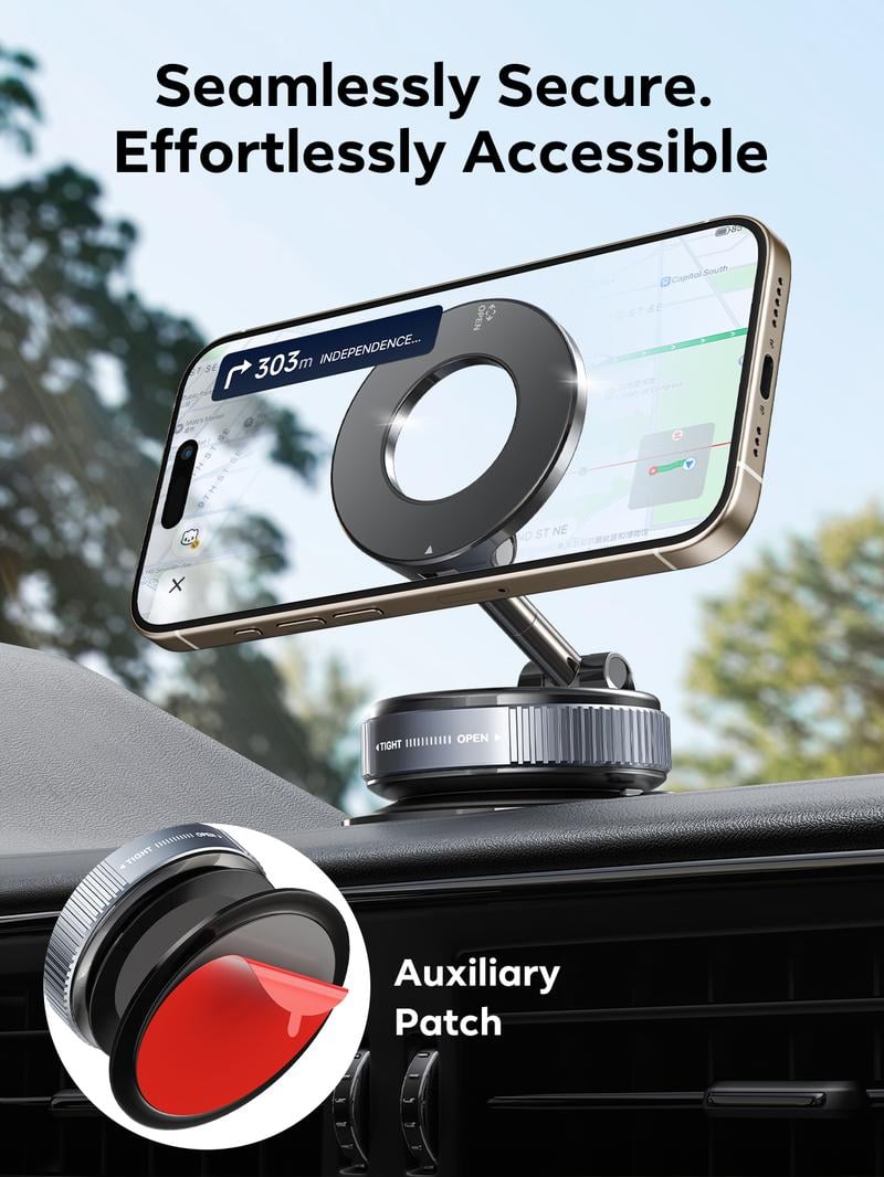 Magnetic Phone Mount, Suction Car Phone Holder, Vacuum Phone Mount with One-Step Lock-50%OFF
