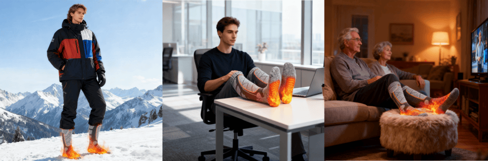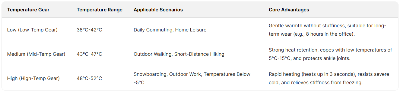 All-Scene Warmth for Winter: Perfectly suited for high-frequency winter activities in Europe and Americaāskiing, hiking, outdoor work (such as delivery drivers and construction workers), commuting (long periods of sitting on the subway/bus), and leisure at home, saying goodbye to the troubles of "cold feet keeping you awake at night" and "joint pain from the cold outdoors."