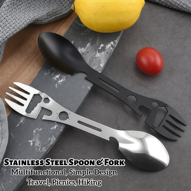 End āTool Clutterā in Your Backpack: One tool integrates 7 frequently used essential functions, replacing traditional cutlery (forks, spoons), outdoor tools (saws, wrenches), and emergency equipment (directional indicator), saving 50% of backpack space for camping/hiking/driving. No more rummaging through scattered tools, making travel lighter and easier.
